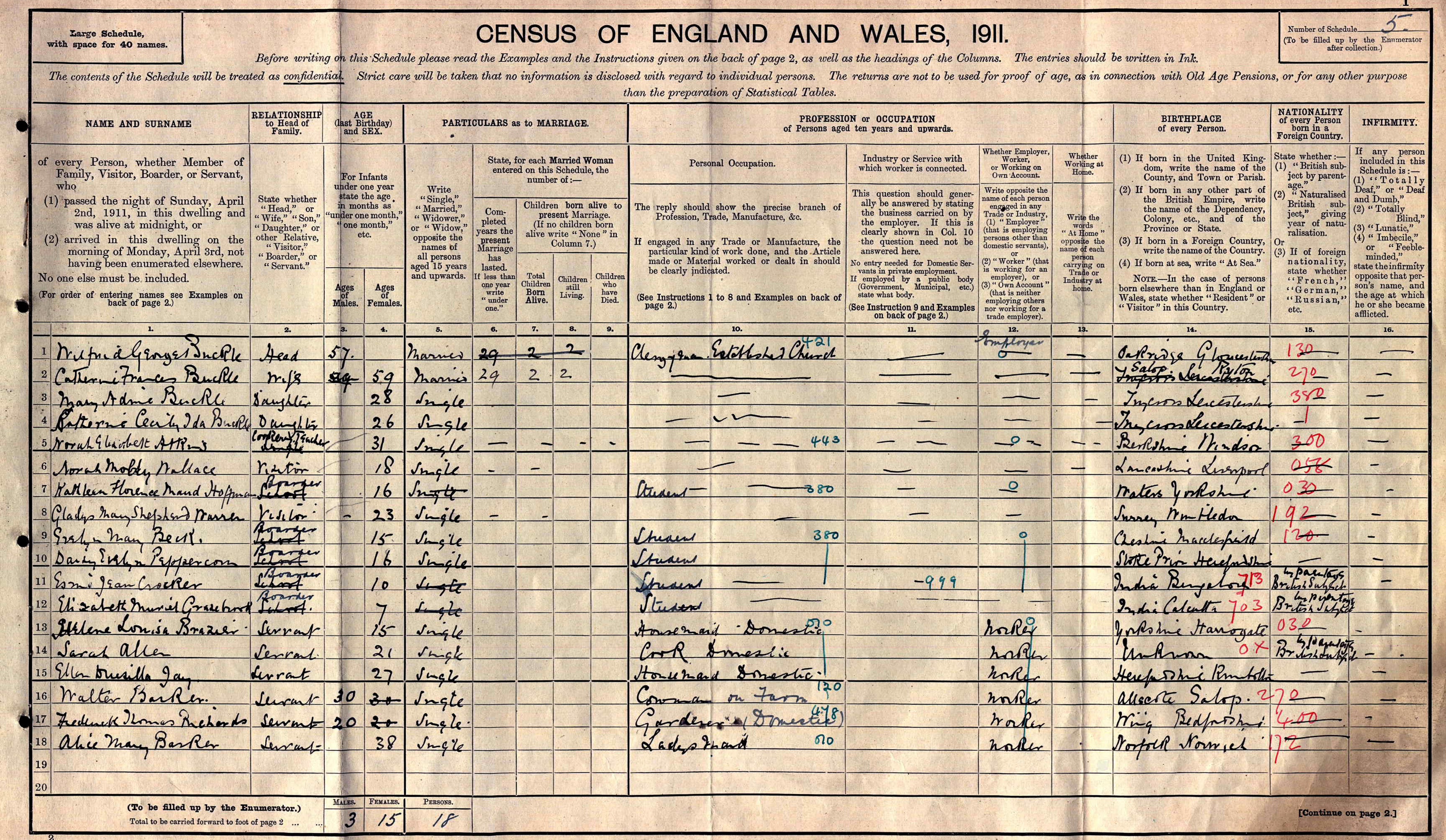 Home Surname List Name Index Sources Email Us | Family Group SheetFATHER | William James Brazier5,6 | BIRTH | about 1864 | Islington, Middlesex, England7 | BIRTH | 28 September 1864 | Islington, London, England, United Kingdom6,8 | BIRTH | about 1869 | London, England10 | RESIDENCE | about 1871 | ; Lindridge, Worcestershire, England7 | CENSUS | 1871 | Lindridge, Worcestershire, England, United Kingdom | RESIDENCE | about 1891 | ; Pensax, Worcestershire, , England9 | RESIDENCE | about 1901 | ; Potter Newton, Yorkshire, England10 | OCCUPATION | 1911 | Bricklayer; 8 Mount Street, Abergavenny, Wales, United Kingdom | CENSUS | 1911 | 8 Mount Street, Abergavenny, Wales, United Kingdom | EMIGRATION | 5 August 1911 | Montreal Canada | DEATH | 9 February 1928 | ; York, Ontario, Canada8 | BURIAL | 11 February 1928 | Prospect Cemetery, Toronto, Ontario, Canada | MARRIAGE | 21 April 1885 | Mary Elizabeth Radford; Martley, Worcestershire | MARRIAGE | 28 July 1923 | Catherine Mains Hastie; York, Ontario, Canada5 | FATHER | William Brazier | MOTHER | Alice Cole | | MOTHER | Helena Louisa Blakeway12 | BIRTH | about 1856 | Kidderminster, Worcestershire, England11 | BIRTH | 17 February 1856 | Hereford and Worcester, Shropshire, Staffordshire, Worcestershire, United Kingdom2 | BIRTH | 17 February 1860 | England149 | RESIDENCE | about 1861 | ; Kidderminster, Worcestershire, England11 | RESIDENCE | about 1871 | ; Kidderminster, Worcestershire, England7 | RESIDENCE | about 1881 | ; Kidderminster, Worcestershire, England12 | RESIDENCE | about 1901 | ; Potter Newton, Yorkshire, England10 | CENSUS | 1911 | 8 Mount Street, Abergavenny, Wales, United Kingdom | EMIGRATION | 5 August 1911 | Montreal, Canada | DEATH | 21 February 1923 | ; York, Ontario, Canada149 | FATHER | John Blakeway | MOTHER | Ann |